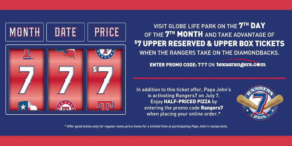 Texas Rangers Coupons & Promo codes - CouponsPlusDeals.com Today's top Texas Rangers Coupons & Promo codes discount: Beleive it or not! 30% OFF on your order by using Texas Rangers discount. Coupon Code . Categories; Blogs; Total Offers: 25. All Coupon Code Deal Type ... Save $100 on Your Ticket Bookings. Nothing feel as good as when you check out! Click this Texas Rangers promo code to activate the ...