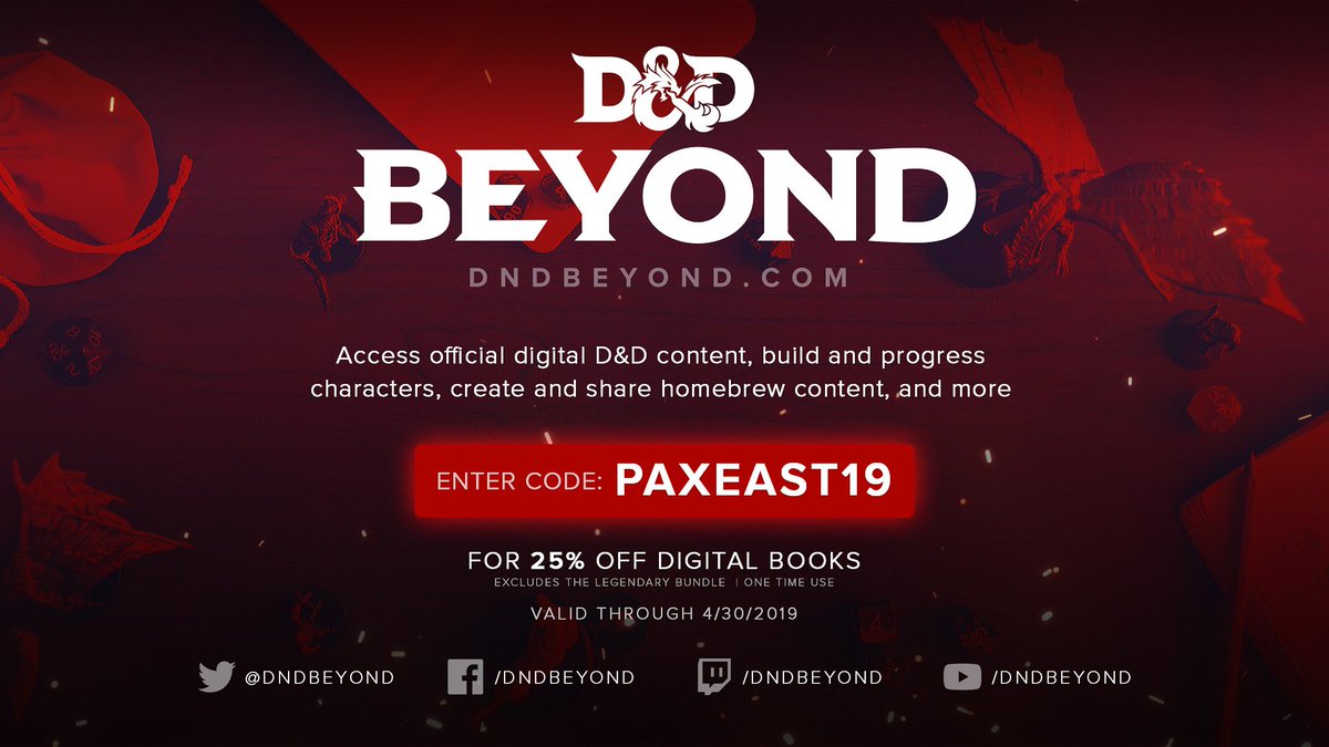 25% Off dndbeyond.com Coupons & Promo Codes, … D&D Beyond Coupon: Get 20% OFF any order Add the code to your basket and receive a top saving on your purchases Get Code Great Offer Verified Fall in love with Player's Handbook at $29.99 Remember that these deals are only for a …